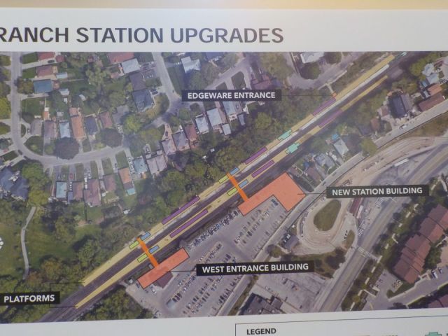 Secondly, both stations, at least according to the slides provided, appear to be losing parking spaces.  The is more significant at Long Branch where a new station will be built at the east end of the parking lot and the current station (at the west end of the parking lot) will be demolished but the access to the current tunnel will remain with a new entrance which appears to take up a couple parking spots.