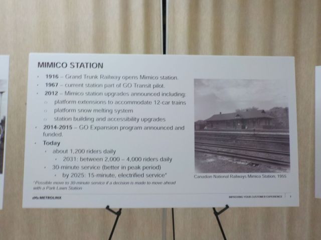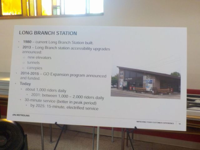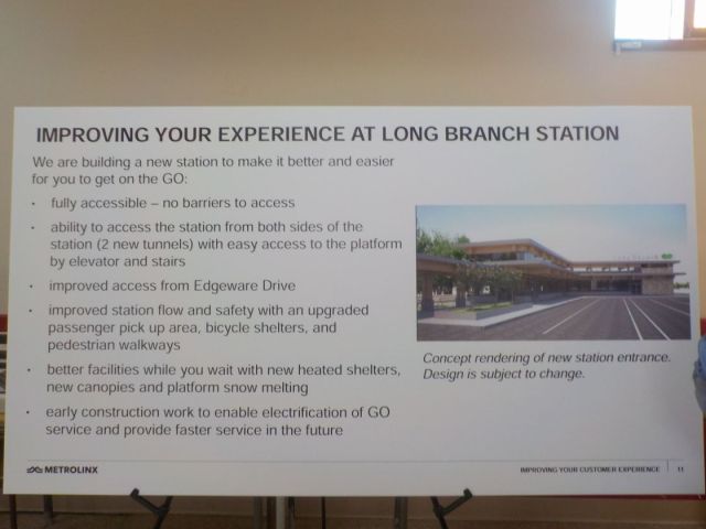 Firstly, Long Branch and Mimico stations were supposed to be made accessible by the end of 2016, according to an article from the Toronto Star in 2013.  However, work is not even due to start at Long Branch until 2020, with a completion date of 2023.  This effectively means a delay of seven years from the original date anticipated.  For the passengers using these stations, it can be frustrating to have to wait another five years from the date of this open house.  However, once completed the work will be a benefit to the communities of Long Branch and Mimico.